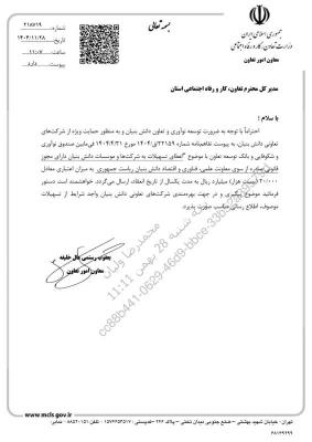 اختصاص خط اعتباري ۲۰ هزار ميليارد ريالي به شركتهاي تعاوني دانشبنيان